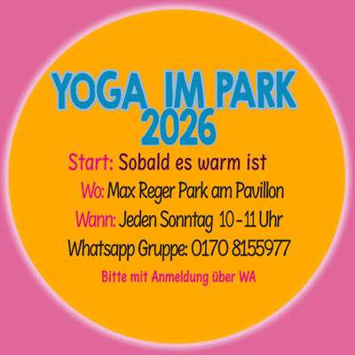 Jedes Jahr mit Beginn der warmen Zeit kannst du mit mir im Grünen yogieren. Die Vögel zwitschern und es gibt nichts Schöneres als den Tag so zu beginnen. Meist starten wir im Mai und sind dann bis September zusammen im Park am Max Reger Pavillon oder direkt daneben am Fluss. Jeden Sonntag von 10 - 11 Uhr.
